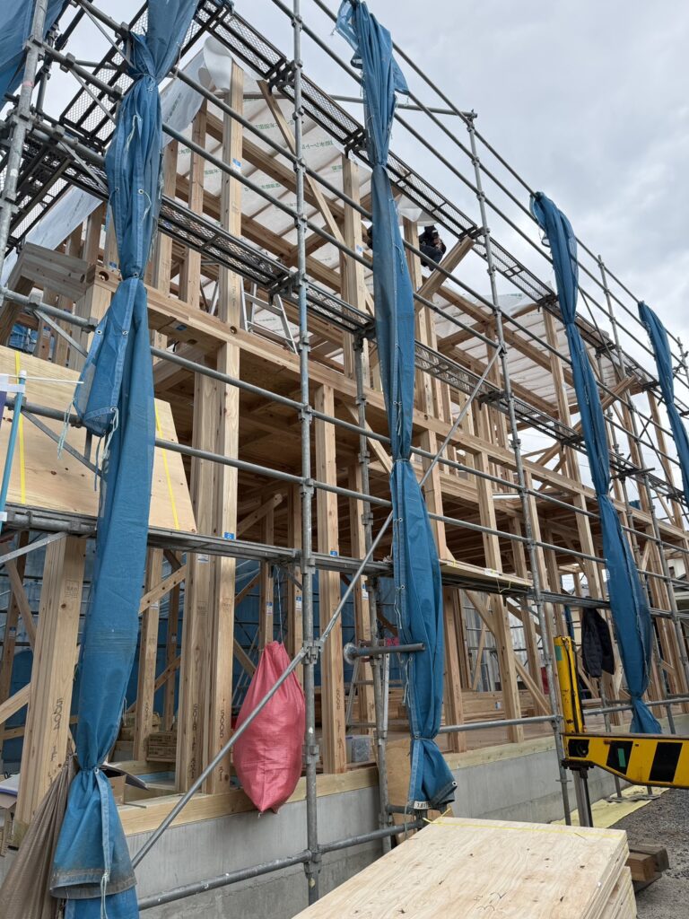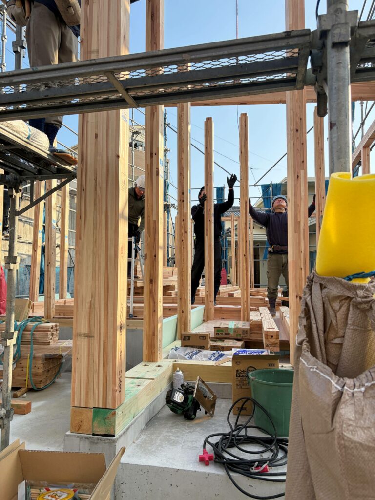 基礎だけだった場所に、みるみるうちに家の形ができていく様子は、何度見ても感動する瞬間です。