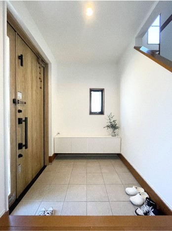 来客玄関と家族玄関を分ける通り土間のある家